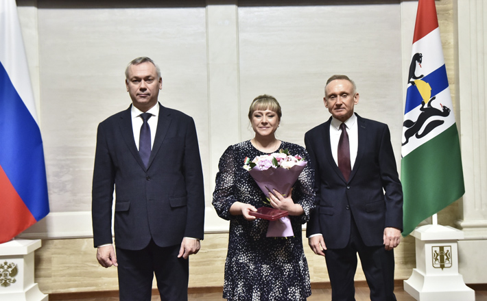 В большом зале правительства родительниц-героинь приветствовали губернатор Андрей Травников и первый заместитель председателя Законодательного собрания Андрей Панфёров.