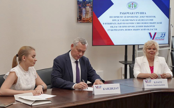 Андрей Травников подал документы от партии «Единая Россия», представив в облизбирком в том числе 267 подписей депутатов представительных органов муниципальных образований и (или) избранных на муниципальных выборах и действующих глав муниципальных образований Новосибирский области.