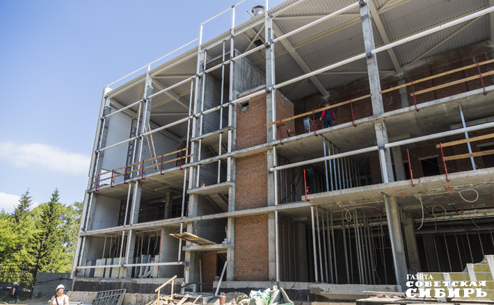 Сейчас работы по строительству трехэтажного спорткомплекса СКА выполнены на 50 процентов.