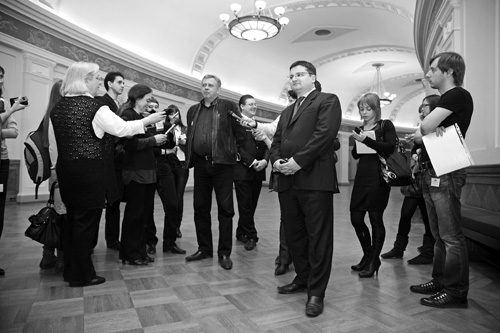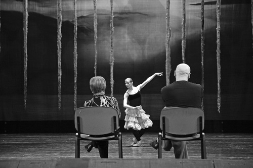 Этот рассказ нечаянно, но очень символично был дополнен встречей с участниками репетиции — примой-балериной Анной Жаровой и ведущим солистом балета Романом Полковниковым, которую проводила на сцене народная артистка СССР Лидия Ивановна Крупенина, некогда выпускница Московского хореографического училища, с 1947 года связавшая свою судьбу с НГАТОиБ. А за кулисами мы узнали несколько из сотен и сотен секретов «сотворения мира» каждого очередного спектакля посредством декораций, а также секреты и достоинства современного покрытия сцены, которое помогает артистам в балете, в том числе и парить в воздухе. Впечатление многолюдья и символического места пересечения множества судеб производили бесчисленные ячейки хранилища костюмерного цеха, таившие в этих платьях, юбках, камзолах и прочих одеждах фейерверк блистательных творческих удач и — не исключено — чьих-то горьких слёз, несбывшихся мечтаний. Не зря же заметила Крупенина, что эта сцена создана для большого полёта, а вот если сил для парения не хватает, то…