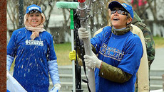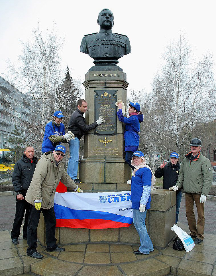 В центральной части города тем временем происходили не менее интересные события. Под девизом «Мой город!» сотрудники областного департамента массовых коммуникаций, журналисты телекомпании ОТС и газеты «Советская Сибирь», вооружившись швабрами и тряпками, мыли мемориальные доски и памятники. В маршрутном листе этой необычной акции значились имена многих выдающихся жителей нашего города: в центре Новосибирска установлены памятник архитектору Андрею Крячкову, бюст маршала авиации Александра Покрышкина, памятные доски летчику-испытателю Василию Старощуку, писателю Григорию Федосееву, врачу Александру Гумилевскому и многим другим.