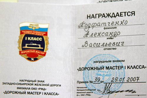 На Западно-Сибирской дороге Александр Подфатченко отработал тридцать один год. Признавался лучшим в профессии на сети дорог. Удостоился высшей награды отрасли — знака «Почетному железнодорожнику». А сегодня здесь трудится его сын Евгений. И тоже — путеец.