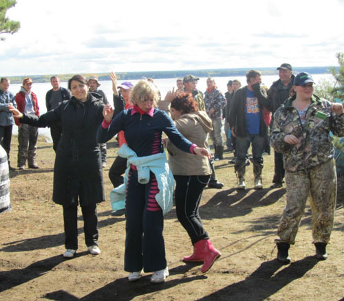 А пока мужья, отцы и сыновья рыбачили, для оставшихся на берегу проходила концертно-праздничная программа в исполнении народных ансамблей из Ордынского района. Параллельно проходили тест-драйв на лодках, предоставленных компанией «Фрегат» и «Солар». Генеральный спонсор чемпионата ТД «Скаут» демонстрировал свое туристское снаряжение, а «УАЗспецпроект» — возможности своей техники, которую с удовольствием тестировали гости, а готовящиеся шашлыки и солянка своим ароматом то и дело заставляли гостей бросать свои взоры в сторону «кухни».