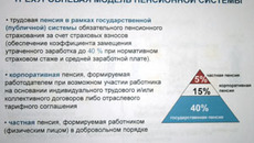 Андрей Пудов объяснил, что стратегия предусматривает реализацию трехуровневой модели. Трудовая или государственная пенсия формируется в рамках системы обязательного пенсионного страхования за счет страховых взносов и межбюджетных трансферов из федерального бюджета. Корпоративная формируется работодателем на основании договоров и соглашений. Это составит еще 15 процентов к пенсии. Частная пенсия формируется самим работником, что может составить еще до 5 процентов утраченного заработка.