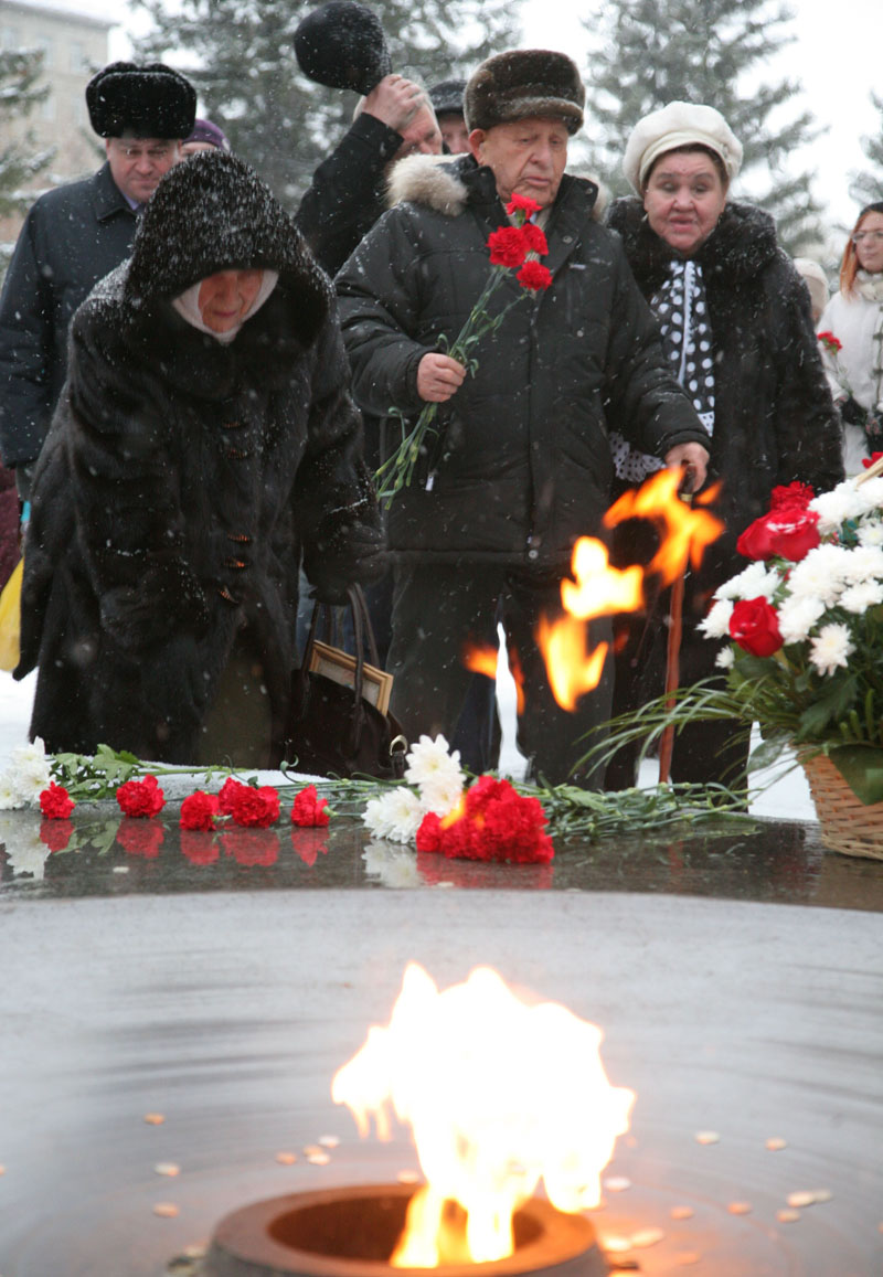 — Монументы в честь подвига советского народа возводились разные. В основном сразу после Победы, когда у всех в памяти еще свежа была война. Поэтому большинство из них — динамичные: солдат падает и роняет знамя — второй тут же поднимает его, третий стреляет, — рассуждает Чернобровцев. — Мой же мемориал совсем другой, так как был задуман и установлен через два десятка лет после Победы. Это траурная симфония, в которой, как и в симфонии музыкальной, раскрываются несколько тем: трагедии, мужества, победы и, конечно же, тема памяти… И меня радует, что до сих пор молодожены приезжают к Вечному огню, что жива эта традиция — чтить память предков.