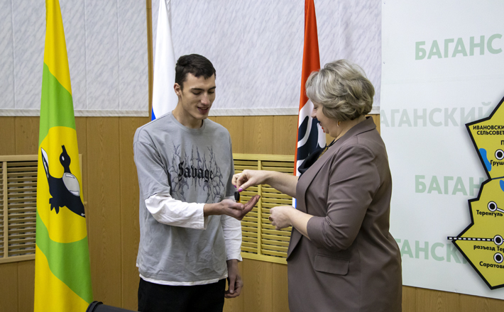 У жителя Баганского района Антона Любимова недавно произошло долгожданное событие: в торжественной обстановке парню вручили ключи от новой квартиры. Отметим, что в прошлом году в Баганском районе благодаря госпрограмме «Стимулирование жилищного строительства в Новосибирской области» возведено два жилых дома — 12-квартирный под служебное жилье и 13-квартирный, в котором 10 помещений предназначено для бюджетников и три переданы сиротам.