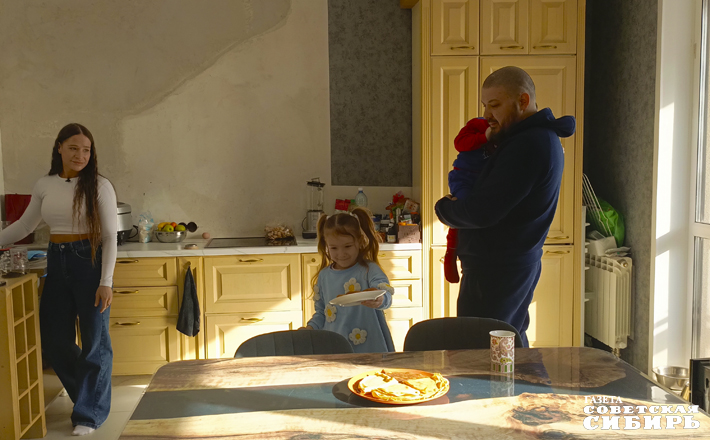 Многодетная семья Волобуевых живет в просторной трехкомнатной квартире на десятом этаже. Ремонт еще не завершен, но все равно здесь уютно: в просторной кухне-гостиной нашлось место большому обеденному столу и мягкому дивану, где так удобно собраться вечером всем вместе, игрушки — в большой детской.