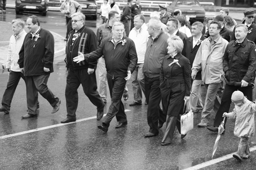 В половине двенадцатого от площади Свердлова стартовало праздничное шествие, участие в котором, буквально бок о бок с первыми лицами региона, мог принять каждый желающий. Внушительных размеров колонна по Красному проспекту дошла до площади у оперного театра, где по уже заведенной традиции состоялся митинг. Горожан, держащих в руках флаги и разноцветные надувные шары, поздравили Виктор Толоконский, Алексей Беспаликов, мэр Новосибирска Владимир Городецкий и народный артист РФ, солист театра музыкальной комедии Иван Ромашко. Выражая радость по поводу того, что нам, россиянам, действительно есть чем гордиться, выступающие от всего сердца благодарили тех, кто внес огромный вклад и в наше великое прошлое, и в безоблачное настоящее, — ветеранов. И тех, кто воевал на фронте, и тех, кто все военные годы в голоде и холоде стоял у станка на заводах. И, обращаясь к молодым людям, которых на площади Ленина собралось немало, выражали надежду, что они станут достойными продолжателями дел дедов и отцов и позаботятся, чтобы счастливое будущее было и у России в целом, и у Новосибирской области — нашей общей малой родины.
