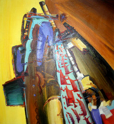 ...Галерея заполнялась гостями: пришли другие художники, пришли любители искусства, не пропускающие ни одного, сколь бы то ни было значительного культурного события, и встреча в уютных стенах «Декарта» обрела главный, истинный и возвышенный смысл. Это была встреча с прекрасным: философичными натюрмортами Омбыша-Кузнецова, трогательно лиричными по настроению живописными городскими пейзажами Вадима Иванкина и его же «вдумчивой» графикой на духовную тему; радостными, как восход солнца, живописными «Петроглифами» Василия Беляева и его нежными графическими произведениями, посвященными Суздалю. Роскошь колорита и изысканность техники в графических цветочных фантазиях Александра Жукова соседствовала с благородной лаконичностью палитры автора гобеленов Доры Нейфельд. Выполненные на дереве живописные произведения Евгении Шадриной завораживали зрителей смелостью композиции и многозначной метафоричностью.