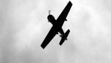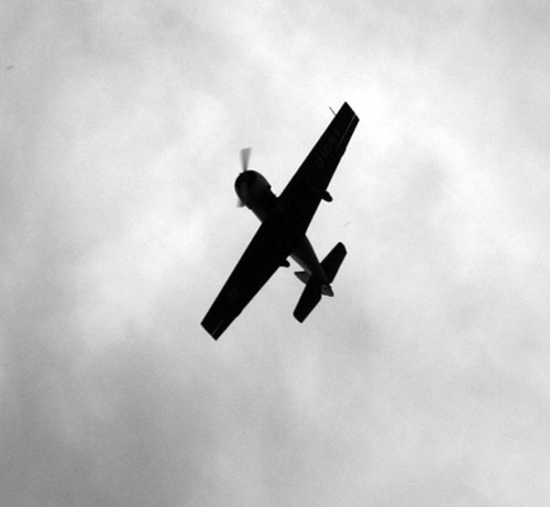 Пара секунд — и, перевернувшись «брюхом» вверх, тёмный самолёт проплыл совсем низко. Даже показалось, что можно разглядеть пилота за стёклами кабины.