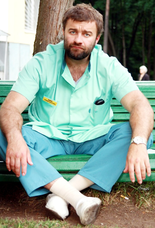— Хирурги очень жесткие. Это естественно: если они не будут быстро принимать решения — человек умрет. Мой герой все-таки диагност, но если он подписывается на операцию — действует жестко. Прикрывает эту жесткость чем угодно — юмором, умными разговорами или пустой болтовней… Потому что по большому счету он боится. Тырса очень разный, и ему тяжело.
