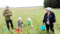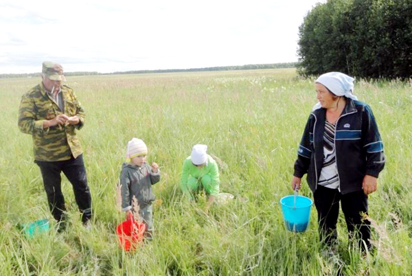 По «совместительству» Олеся Владимировна приходится дочерью старшего поколения, изображенного на следующем снимке. Вместе со своей мамой и свекром наша героиня привезла маленькую Ладу на ягодную поляну. В тот день был собран огромный урожай лесной клубники, по секрету рассказала нам Олеся Владимировна.