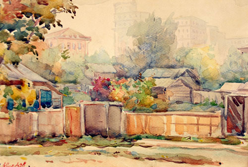 Хорошо знакомый Силичу тихий уголок в центре Новосибирска с видом на стоквартирный дом в глубине предстает на двух акварелях 1938 года: «Зимний городской пейзаж» и «Каменские домики». Здесь острый интерес к деталям городского быта уступает место мягкому лирическому чувству — и цельность акварельной живописи не противопоставляет, но гармонично вводит в общую пространственную среду уютные домики на ближнем плане и многоэтажные здания вдали, объединенные розовато-серой морозной дымкой в зимнем этюде и теплыми, медовыми тонами осеннего пейзажа.