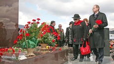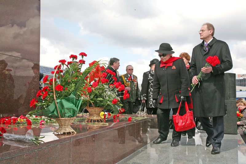 Цветы к памятнику возложил и губернатор Новосибирской области Василий Юрченко. Отдав дань памяти погибшим воинам, глава региона долго общается с ветеранами, призывает молодёжь чтить и приумножать то, что завоевано их предками.
