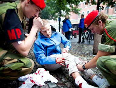 А в это время настоящий террорист был уже на полпути к острову Утойа, где расположился летний лагерь молодежной организации правящей сейчас в составе коалиции Норвежской рабочей партии. В тот момент на острове находилось около 600 человек, большинство в возрасте 13—17 лет. Они уже узнали от родных о взрыве в правительственном квартале Осло и поэтому не удивились, когда к берегу причалила лодка, в которой находился вооруженный молодой человек в форме полицейского. Он попросил собрать всех на поляне около кафе. Собралось несколько сотен человек. «Полицейский» улыбнулся и открыл огонь...