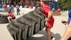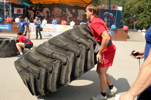 Главная сцена парка между тем гремит на собственный лад: юные представители боевых искусств и единоборств, спортивных танцев, аэробики и других зрелищных дисциплин сменяют друг друга нон-стопом. Затем перед сценой стартуют состязания по силовому экстриму: сибирские богатыри (из числа желающих) начинают вроде как традиционно — с выжимания гантелей. А продолжают… Словом, что тут только не происходило: и сковородки скатывали в трубочку, и шины от трактора К-700 переворачивали (а весом-то они более 300 кг будут), и даже автомобиль «Mercedes-Benz» тягали поодиночке! Вот так разнообразно, весело и увлекательно в парке культуры и отдыха «Центральный» был отпразднован День физкультурника.