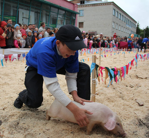 Ну, может, и не самым главным, но точно самым ожидаемым моментом народного гулянья стали поросячьи бега, впервые проводимые в Колывани. Всем не терпелось посмотреть на бегунов с пятачками, покоряющих дистанцию в 20 метров. Поросята звонко хрюкали, хозяева их подбадривали криками, а кто и хворостиной. Победителем стал поросёнок Крюгер. За что прямо на пьедестале был вознаграждён пирожным из рук своего хозяина.
