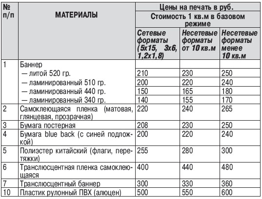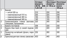 Прайс-лист на услуги РА «АртБизнесЛайн»