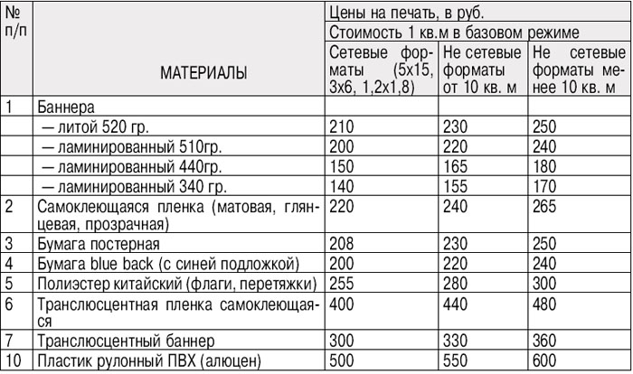 Прайс-лист ООО РА «АртБизнесЛайн»