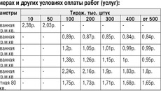 Сведения о размерах и других условиях оплаты работ (услуг) - см. таблицу