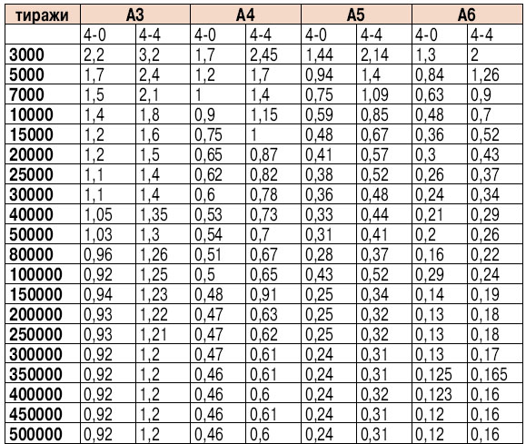 Предлагаем следующий прайс для размещения заказов на печать листовок - см. таблицу