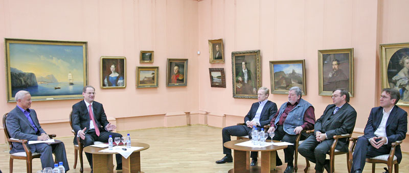 Зал русской живописи, украшенный полотнами великих художников XVIII и XIX веков, уже сам по себе задавал встрече тон необыденный, наполненный традициями и заботой о высоком. А по сути, это был разговор профессионалов о том, как сделать развитие культуры процессом целенаправленным, максимально общественно полезным и, безусловно, работающим на имидж региона. Причем губернатор, что называется, полностью — может быть, за исключением каких-то нюансов и деталей — был в теме.