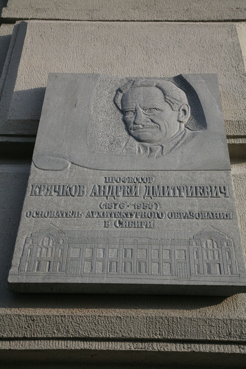 Андрей Дмитриевич Крячков (1876 — 1950) — профессор, доктор технических наук, заслуженный деятель науки и техники РСФСР. Он построил около ста уникальных зданий в различных городах Сибири: Томске, Новосибирске, Омске, Новокузнецке, Анжеро-Судженске, Кемерово. С 1909 по 1947 годы по проектам архитектора только в Новосибирске было построено более 30 зданий. Его сооружения выполнены с абсолютной точностью технических расчетов, с использованием новейших на то время технологических приемов и с удивительной быстротой. Все здания отличаются рациональной планировкой, экономичностью. Они выстроены с монолитными железобетонными внутренними каркасами. Интерьеры зданий имеют значительные пролёты, внутренние помещения всегда залиты светом через многочисленные оконные витражи; подвальные помещения в большинстве своем несут функциональную нагрузку. На международной выставке искусства и техники в Париже в 1937 году за архитектурные и научные работы Андрею Крячкову присудили диплом «Гран-при» и золотую медаль.