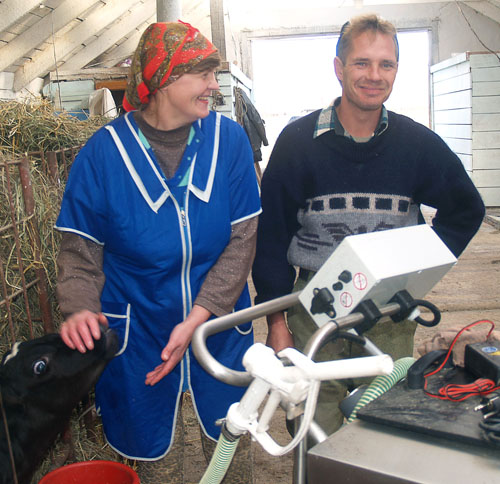 «Чудо-машину», как называют её деревенские, установили в телятнике кубанской фермы. Смотрит за ней и справляется со всеми механизмами скотник-слесарь Евгений Рязанов. В помощниках у него телятница — жена Галина Жукова. В селе они живут не так давно, переехали сюда из Венгеровского района. Квартиру им дали сразу, и работа есть. Только не ленись! Зоотехник Лидия Воробьёва с похвалой отзывается о супругах: к делу относятся хорошо, вон какие телятки справные.