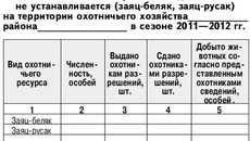 4. Утвердить форму отчетности предоставления сведений о добыче охотничьих ресурсов, в отношении которых лимит добычи не устанавливается (заяц-беляк, заяц-русак) согласно приложению (см. таблицу 1).