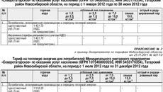 1. Установить тариф на тепловую энергию (мощность) для потребителей Муниципального унитарного предприятия «Северотатарское» по оказанию услуг населению (ОГРН 1075468000233, ИНН 5453176354) с календарной разбивкой согласно приложениям № 1, 2. (см. таблицу 1)