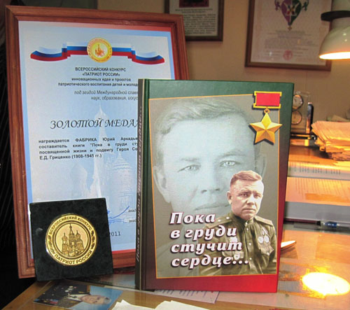 Полученная награда, золотая медаль конкурса «Патриот России», оказалась для автора полной неожиданностью. Книга пришла в Министерство обороны в Москве, и работники культурного центра сами представили ее на конкурс.