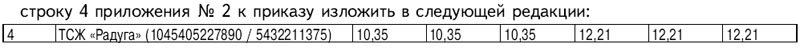 строку 1 приложения № 2 к приказу изложить в следующей редакции (см. таблицу 4)