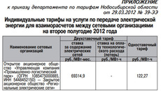 В соответствии с Федеральным законом от 26.03.2003 № 35-ФЗ «Об электроэнергетике», пунктом 3 постановления Правительства Российской Федерации от 29.12.2011 № 1178 «О ценообразовании в области регулируемых цен (тарифов) в электроэнергетике», Основами ценообразования в области регулируемых цен (тарифов) в электроэнергетике и Правилами государственного регулирования (пересмотра, применения) цен (тарифов) в электроэнергетике, утвержденными постановлением Правительства Российской Федерации от 29.12.2011 № 1178, приказом Федеральной службы по тарифам от 06.08.2004 № 20-э/2 «Об утверждении Методических указаний по расчету регулируемых тарифов и цен на электрическую (тепловую) энергию на розничном (потребительском) рынке», приказом Федеральной службы по тарифам от 08.04.2005 № 130-э «Об утверждении Регламента рассмотрения дел об установлении тарифов и (или) их предельных уровней на электрическую (тепловую) энергию (мощность) и на услуги, оказываемые на оптовом и розничном рынках электрической (тепловой) энергии (мощности)», постановлением Губернатора Новосибирской области от 18.10.2010 № 326 «О департаменте по тарифам Новосибирской области» и решением правления департамента по тарифам Новосибирской области (протокол заседания правления от 29.03.2012 № 9) департамент по тарифам Новосибирской области приказывает: