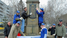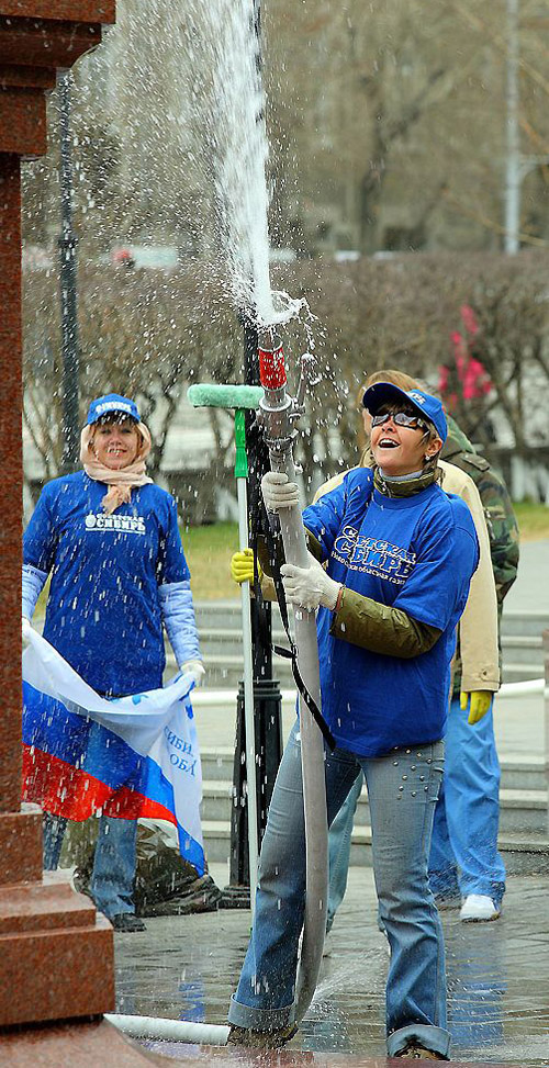 В центральной части города тем временем происходили не менее интересные события. Под девизом «Мой город!» сотрудники областного департамента массовых коммуникаций, журналисты телекомпании ОТС и газеты «Советская Сибирь», вооружившись швабрами и тряпками, мыли мемориальные доски и памятники. В маршрутном листе этой необычной акции значились имена многих выдающихся жителей нашего города: в центре Новосибирска установлены памятник архитектору Андрею Крячкову, бюст маршала авиации Александра Покрышкина, памятные доски летчику-испытателю Василию Старощуку, писателю Григорию Федосееву, врачу Александру Гумилевскому и многим другим.