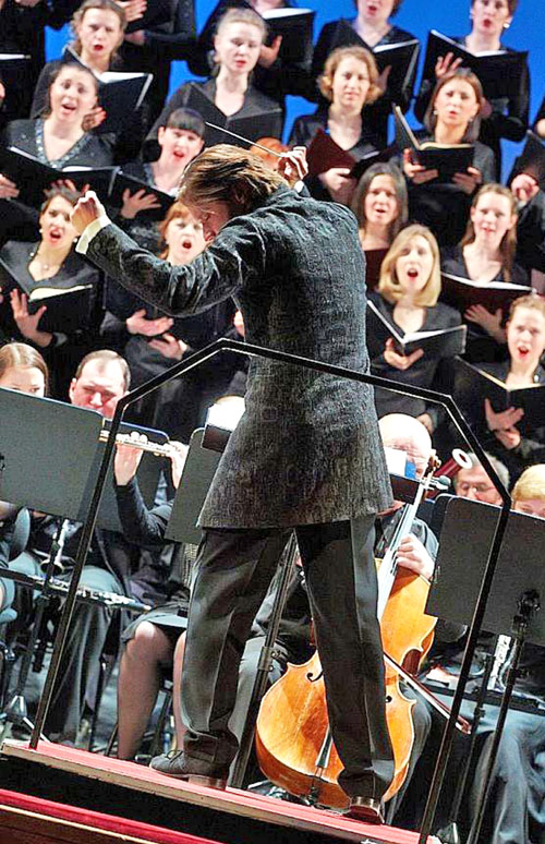 …Первыми после долгих-долгих оваций со сцены через зал ушли солисты, потом вернулись, потому что расстаться с ними у публики не было сил… Потом так же, через зал с инструментами, прошли оркестранты, им тоже аплодировали продолжительно и, что называется, адресно. Хоры потихонечку со своих ступенек плавно двинулись к краю сцены, и тут зрители совсем не в стиле академического регламента закричали: «Молодцы!», а хористы в ответ — «Спасибо!» Потому что счастливчиками себя чувствовали все. И в первую очередь оттого, что исполнение этого произведения всегда эксклюзив и это как раз тот случай, о котором говорят: сошлись все звезды.