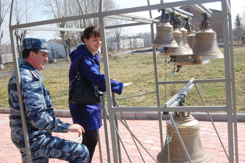 Первый пункт остановки — часовня. Построили ее пару лет назад, чтобы воспитанники колонии приобщались к вере и осознанно боролись со своими плохими привычками, приобретенными на воле. Рядом с часовней — колокол, но звонить никто не решается. Первым подходит Александр Илющенко, потом я. Звонарь из меня никакой.