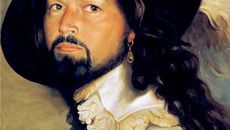 …Словом, через несколько минут весёлые и довольные все отправились на выставку. Картины радовали глаз. Большинство из них — портреты знаменитостей из серии «Река времени». Тут вам и Ди Каприо, и Клуни, и Де Ниро в одеждах разных эпох, будто с полотен старых мастеров. И наши знаменитые знакомцы — режиссер Павел Лунгин, ученый и телеведущий Николай Дроздов, актриса Татьяна Васильева, конечно же, автопортреты и прочее. Публика была счастлива и пиететна к увиденному, но время от времени демократично дергала мастера за рукав: «А вот вы мне объясните…». Никас любезно и тоже демократично объяснял. Искусствоведов волновало: подлинники на стенах или что иное?..