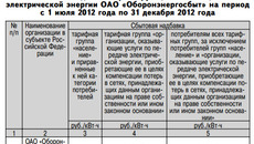 1. Установить сбытовую надбавку гарантирующего поставщика электрической энергии ОАО «Оборонэнергосбыт» согласно приложению. (см. таблицу 1)