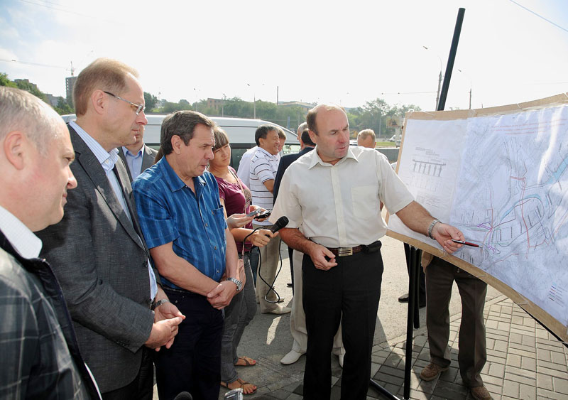 Ознакомились первые лица и с планами работ по строительству развязки на пл. Южной. В этом году на строительство дорожной развязки выделено около 380 млн рублей. Говоря о сроках строительства, губернатор Василий Юрченко отметил: