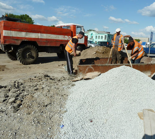 Сейчас в городе с утра до вечера работает дорожная техника. Укладывают асфальт, формируют тротуары. Но кое-где приходится ограничиться и ямочным ремонтом.