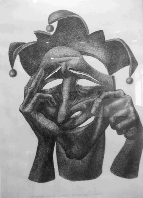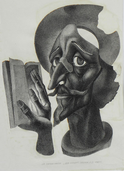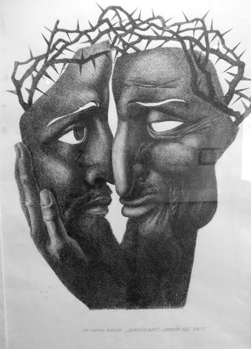 Теперь, спустя годы, очевидно: самоотдача была не напрасной — такой же адекватный по глубине отклик находят сегодня эти графические листы у зрителей. Например, серия «Маски», над которой Юрий Дмитриевич работал практически всю жизнь. Или листы, которые чудом попали в экспозицию. О том, что они лишь часть большого замысла, знают только близкие, посвященные. Это «Иоланта», «Владик заболел»: и там и там глаза как средоточие души, в первом случае — разбуженной, прозревшей, во втором — страдающей души отца, отраженной в портрете сына.