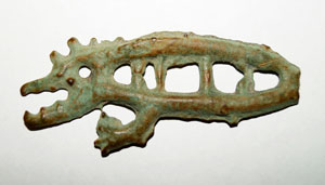 В апреле — мае 2012 года экспедиция Новосибирского государственного краеведческого музея в рамках проекта «В поисках утраченного» исследовала памятники археологии, разрушенные водами Новосибирского водохранилища. Ученые составили большую коллекцию различных предметов, включая культовое бронзовое литье. Наиболее интересной находкой является плоская ажурная фигурка фантастического животного эпохи раннего железного века, в которой, если не рассматривать ее детально, можно угадать крокодила. В то же время, при более пристальном исследовании в изображении можно найти черты наиболее популярного в мифологии и в художественном ремесле образа лося, который связан с мотивом сотворения мира или с началом чьего-то рода. Данная находка уникальна и интересна тем, что принадлежит к кулайской культуре. Ранее подобные предметы в Новосибирском Приобье почти не находили, поскольку ажурное кулайское литье характерно для памятников таежных районов Томской области.