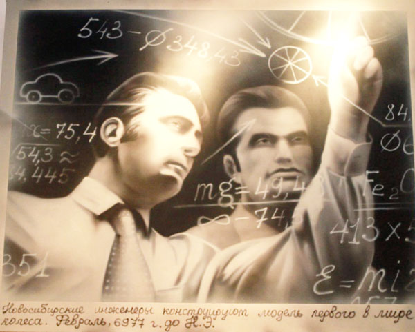 Графика, картины маслом и в технике акрил, рисунки на кусочках дерева и даже компьютер с кривобокими чурками вместо клавиатуры и монитора — все это о России, о Сибири, о нас. В этих работах отражен как своеобразный взгляд сибиряков на мир, так и образ России глазами иностранцев.