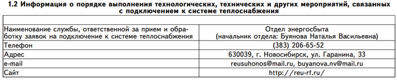 1.2 Информация о порядке выполнения технологических, технических и других мероприятий, связанных с подключением к системе теплоснабжения (см. Таблицу 2)
