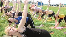 На аштанга-йоге не протолкнуться — здесь собрались любители привести в порядок тело и дух с утра пораньше. Ровные ряды «йогов», в позе «вытянутый треугольник» (Уттхита Триконасана), напоминают солдат во время парада или советские плакаты о пользе утренней гимнастики. Чуть поодаль духовные гуру призывают рассевшихся вокруг них слушателей положить себе руку на голову и пробудить свое «я». На инструменте, похожем на миниатюрное пианино без ножек, играет суровая и серьезная на вид женщина в цветастом сари. Ученики послушно поглаживают свои макушки раскрытой ладонью и с глубокомысленным выражением лица закрывают глаза — они погружаются в нирвану медитации. Примерно час спустя на этом же месте парень в славянской рубахе массажирует спину девушке руками в шерстяных варежках с нашитыми на них пластмассовыми шариками — так называемый банный массаж. По словам ведущей этого мастер-класса, в старину наши предки разогревали друг друга подобным образом перед тем как зайти в парилку. Только шарики на вережках у них были из природных материалов.