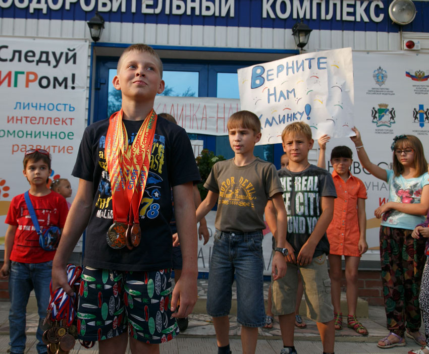 Над входом в СК «Калинка» до сих пор висит баннер Международных детских игр «Спорт — Искусство — Интеллект», прошедших в Новосибирске в июне-июле нынешнего года. Алёша Рябов на том турнире выиграл золото для нашего региона с товарищами по команде и четыре индивидуальные медали на отдельных снарядах. Еще несколько десятков медалей разных турниров и достоинства — итог восьмилетней работы Алексея в этом зале. Возможно, он в будущем станет большим чемпионом, который прославит Новосибирск на мировом уровне, и практически наверняка человеком, привыкшим добиваться поставленных целей с помощью упорного труда. Что зачастую не менее важно, чем гипотетическое золото Олимпиады. Алёша пока не понимает всей серьезности ситуации — просто не может понять, как его и всех остальных смогли выставить за дверь спорткомплекса.
