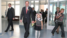 — Я бываю в других регионах и поэтому могу сказать, что построенная в Калининском районе школа — лучшая школа не только в области, но и во всей стране. Это единственная новая школа в регионе в этом году, но в материальное обеспечение, ремонт учебных заведений область ежегодно вкладывает значительные средства. Несмотря на то что во всех школах в этом году прошли запланированные ремонтные работы, как текущий косметический ремонт, так и довольно масштабные капитальные работы, было выделено достаточно средств и на закупку учебников. Проводилась также работа по учету существующих библиотечных фондов. Мы обратились за помощью к родителям, в чем я не вижу ничего зазорного, ведь и в советские времена ненужные семье учебники отдавали в школу. В итоге мы обеспечили всех учеников бесплатными учебниками, и я удовлетворен готовностью школ к учебному году.
