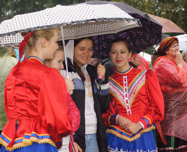Не страшны оказались и для потомков сибирских первопроходцев ни непогода, ни ветер, ни грязь. Только звонче потрескивали дровишки в импровизированных кострищах, бойчее и энергичнее хороводились в плясовом кругу участники ансамблей. Зонтики за ненадобностью были отданы на поруки зрителям действа. Никто не пожалел о том, что приехал в такую даль, да в такую слякоть. А когда историк, профессор Новосибирского педуниверситета Андрей Павлович Бородовский, ведущий со студентами раскопки в Умреве, заметил, что, дескать, любить Сибирь в хорошую погоду может любой, а вы попробуйте полюбите ее в ненастье, как полюбили 300 лет назад казаки-первопроходцы, народ воодушевился еще больше. Слова эти вовсе всех раззадорили и завели.