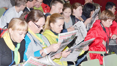 Современному дизайну газет посвящено выступление шеф-редактора областной газеты «Советская Сибирь» Юрия Белоусова. Вопросы, ответы, советы. Кстати, вполне соответствующие духу времени примеры верстки и оформления газетных полос есть и в местной печати, но многому предстоит научиться. Тут все газетчики согласны, каждый помнит с университетских времен латинскую сентенцию: «Стоять на месте — это двигаться назад».