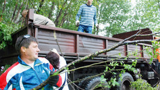 Оставшимся в лагере коллегам дождь не помещал собрать мусор, загрузить обрезками деревьев и засохшими ветками четыре (!) больших грузовика. А еще, промокнув до нитки, под сопровождение не устающего лить дождя выкопать ямки и посадить будущие сосны. Спастись от простуды и согреться помогли лишь горячий душ и жарко натопленная банька. Спасибо работникам лагеря!